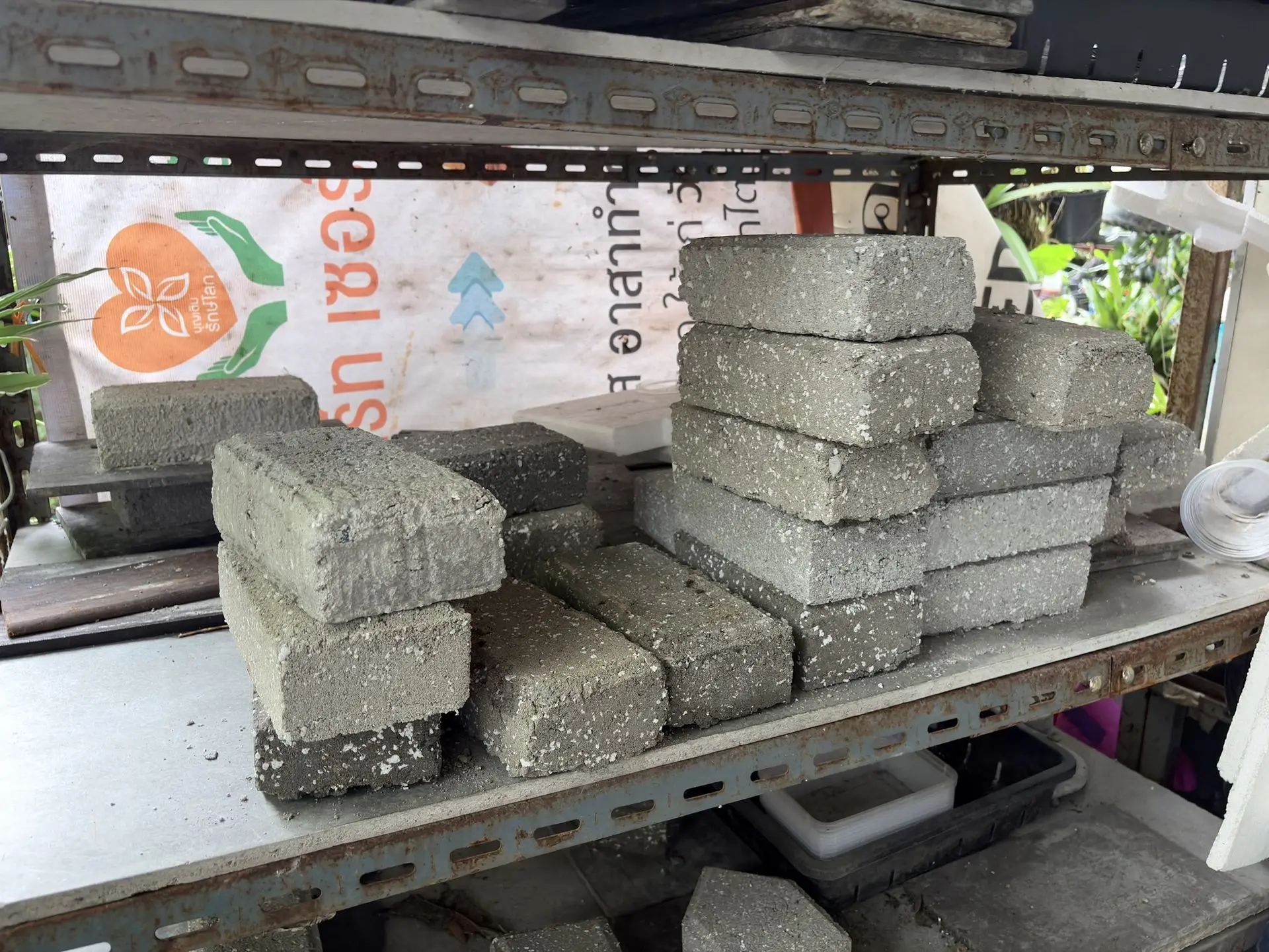 此外,從紅寺充分展現將廢棄物轉化為實用建材的可能性。受到慈濟在園區內使用大量透水磚啟發,從紅寺則因地制宜,將原本難以處理的發泡塑膠,與混凝土混合製成地磚,實現獨特的在地化創新,甚至成為帶領志工DIY的手作項目。