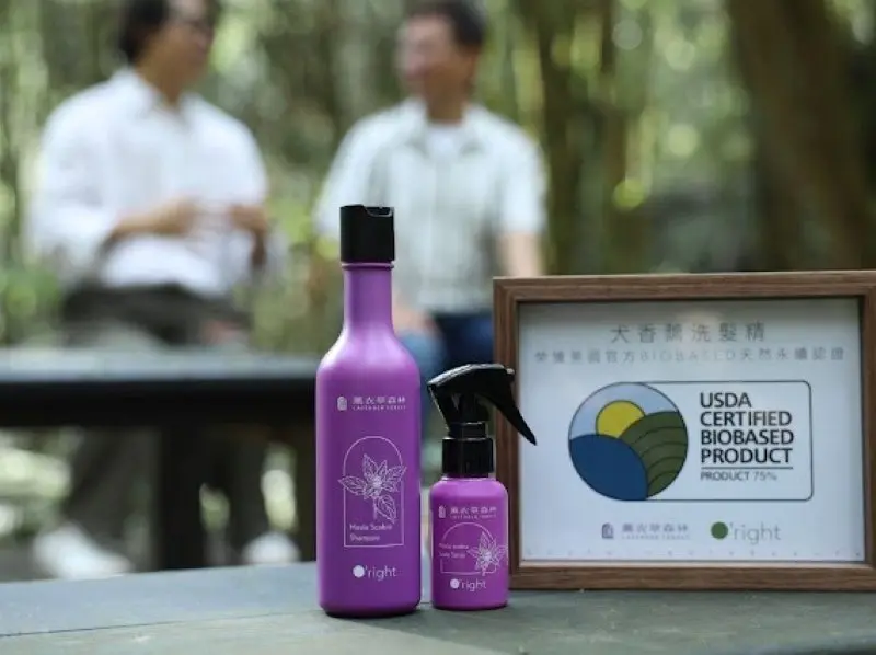 歐萊德與薰衣草森林聯名的秋冬頭皮養護產品,以台灣原生植物犬香薷(台灣薰衣草)為核心,並取得美國官方USDA Biobased天然永續認證。 歐萊德/提供