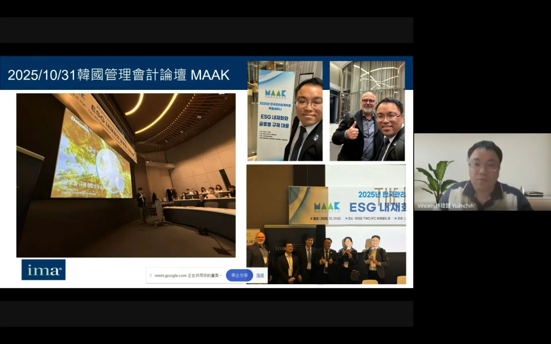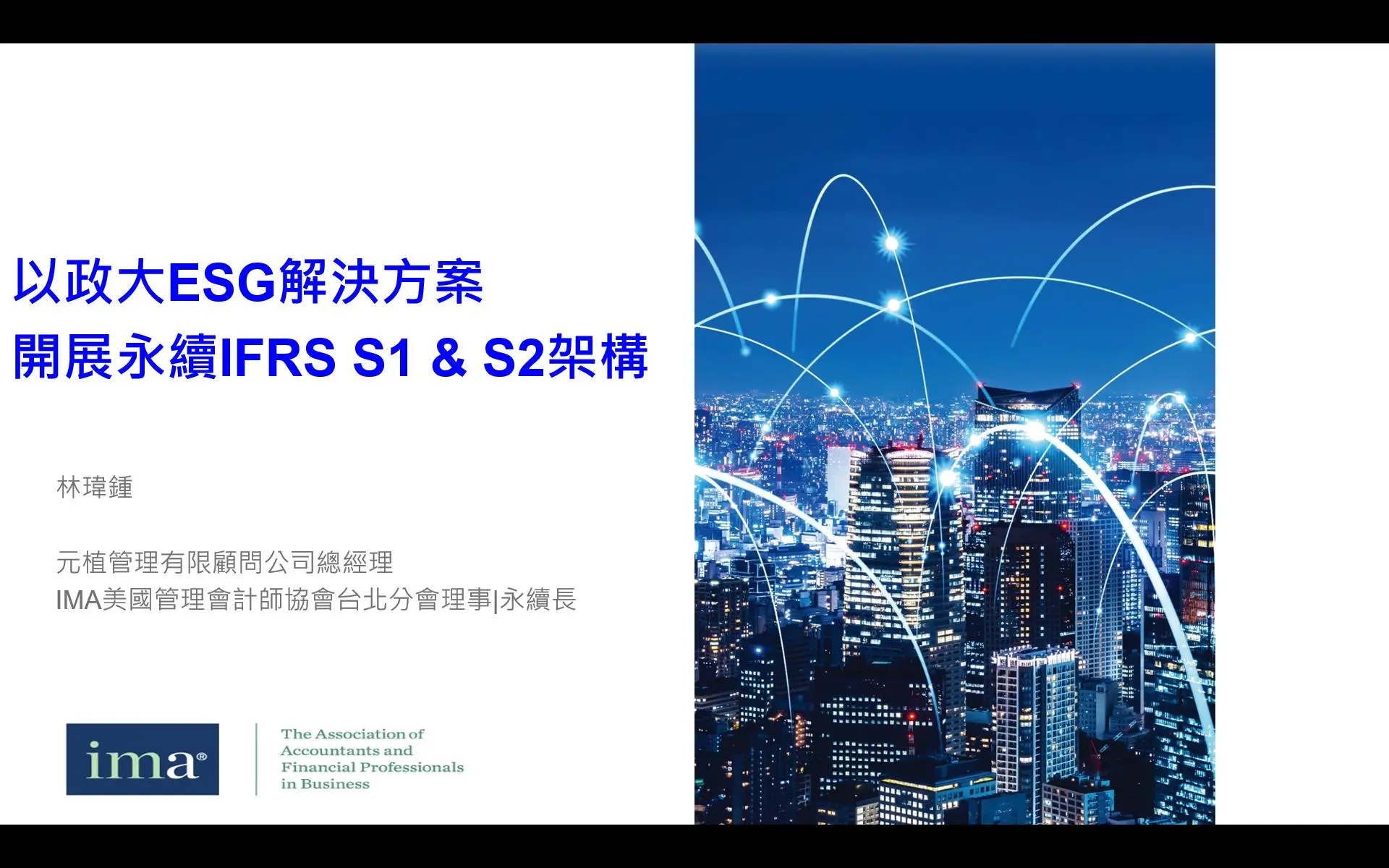 本次講座由 IMA 台北分會理事暨 元植管理顧問有限公司 總經理 林瑋鍾(Vincent Lin)擔任主講人,針對企業高度關注的 IFRS Foundation 所發布之 IFRS S1 與 IFRS S2 永續揭露準則,分享最新發展趨勢與實務觀察,同時結合其參與韓國管理會計學會論壇之國際交流經驗,提出前瞻且具落地性的策略思維。